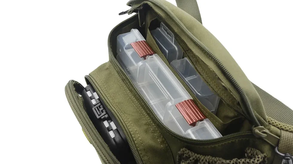 2 основні відділення на замках для зберігання рибальських коробок, інструментів і дрібниць: