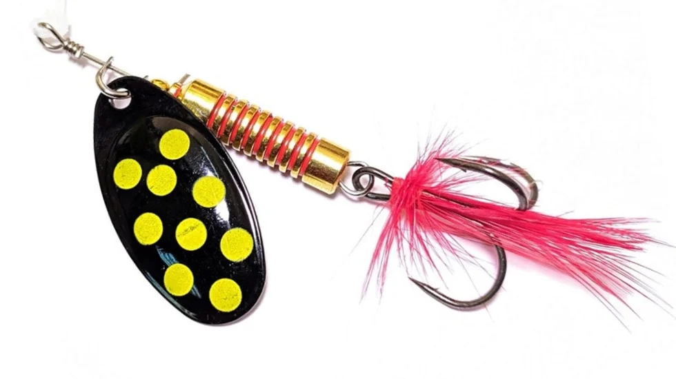 Серія блешень Spin X Round складається з чотирьох моделей, які відрізняються між собою вагою. Представлена тут приманка важить 8 гр. Вона проста в управлінні і може застосовуватися для лову різних хижаків. Оснащена округлою пелюсткою. Тому в порівнянні з блешнями, оснащеними витягнутими пелюстками, їх гра повільніша. Приманка Spin X Round добре підходить для лову пасивної риби. Гачок прихований під опушкою з червоного пір'я. Це доповнення потрібно не тільки для маскування. Пір'я також роблять гру більш провокуючою, змушуючи хижака напасти саме на гачок. Забарвлення дуже яскраві, тому приманку буде добре видно в каламутній воді. Пелюстка доповнена плямами, щоб блешня була більш схожа з живою рибкою.