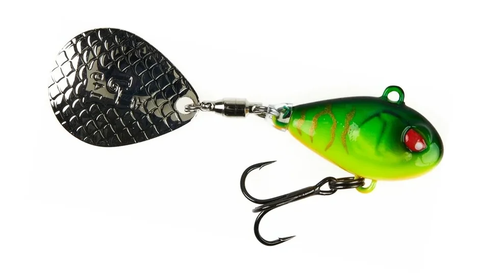 Блешня тейл-спінер LJ BASARA TAIL SPIN 24 г / 003 – це ефективна штучна спінінгова приманка, головною особливістю якої є розташування обертової пелюстки на хвості та наявність головного обтяжливого елемента.