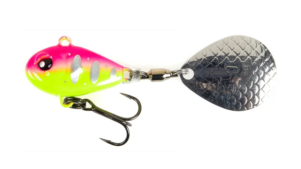 Блешня тейл-спінер LJ BASARA TAIL SPIN 24 г / 010 – це ефективна штучна спінінгова приманка, головною особливістю якої є розташування обертової пелюстки на хвості та наявність головного обтяжливого елемента.
