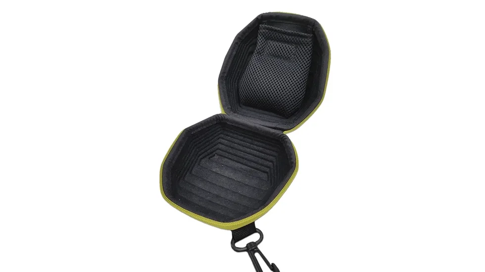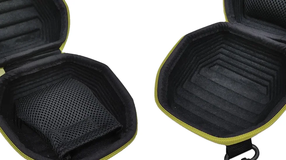 Внутрішня кишенька з тришарової сітки дозволяє зручно зберігати знімну ручку котушки. Для зручності носіння на зовнішній стороні чохла є карабін, за допомогою якого ви можете прикріпити чохол до шлюфки штанів або сумки. Компактний розмір дозволяє помістити чохол навіть у рюкзак чи сумку.