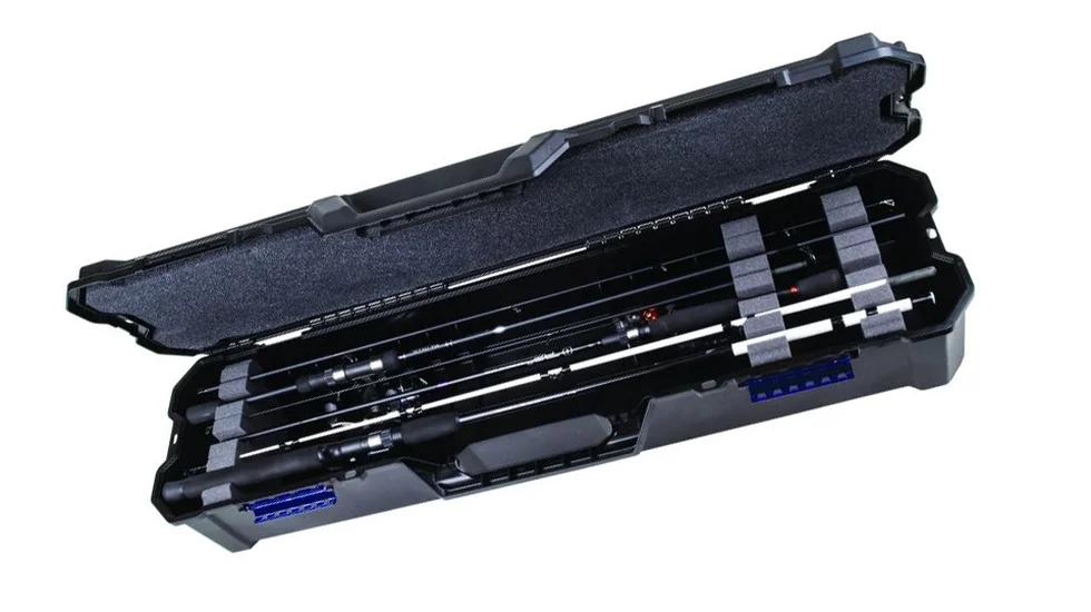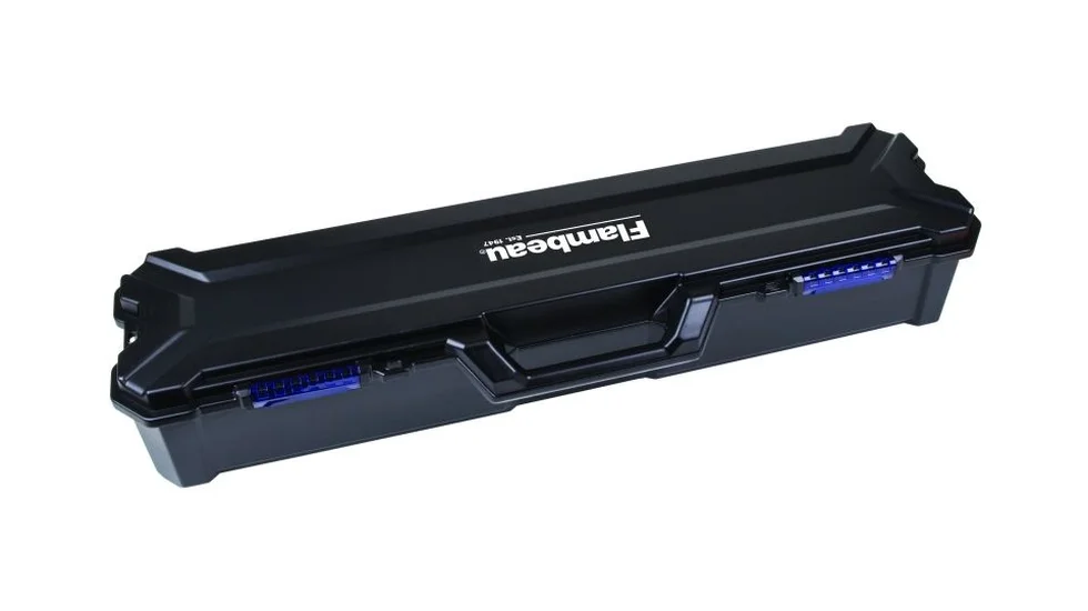 Зручний практичний кейс Flambeau із жорсткими стінками для зберігання й транспортування рибальських вудлищ. Вміщує два вудлища з боків (з колінами завдовжки 1.98 м) і два вудлища в центрі (з колінами 1.8 м або коротшими). Крім цього, усередині можна розміщувати будь-які рибальські снасті. Під час укладання в нього спінінгів, фідерів, короповика або інших бланків можна не знімати котушки, що помітно скорочує час підготування снастей до риболовлі й навпаки. Для безпечної фіксації колін під час транспортування в корпусі встановлені м'які поліуретанові вставки з прорізами. Для перенесення забезпечений великою зручною ручкою. Щоб всередину не потрапляв пил і бруд за периметром кейса прокладена повітронепроникна прокладка. Замки з міцного полікарбонату надійно захистять від мимовільного розкриття. До комплекту входить картридж Zerust.