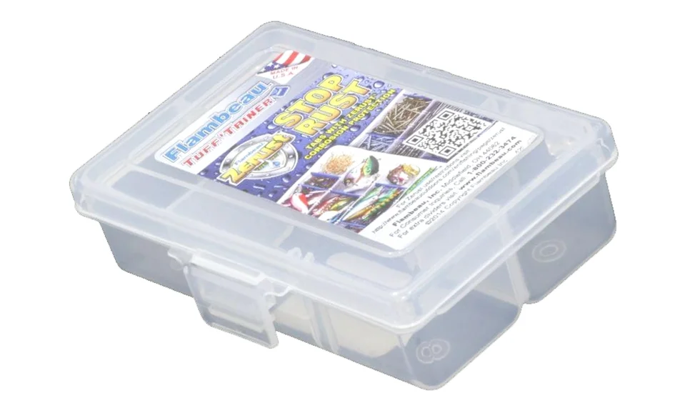 Коробка Flambeau 1002 має 4 відділення і комплектується 2 зйомними перегородками. Коробка виготовлена за технологією Zerust - додавання до складу спеціального полімеру, який перешкоджає утворенню корозії на снастях.