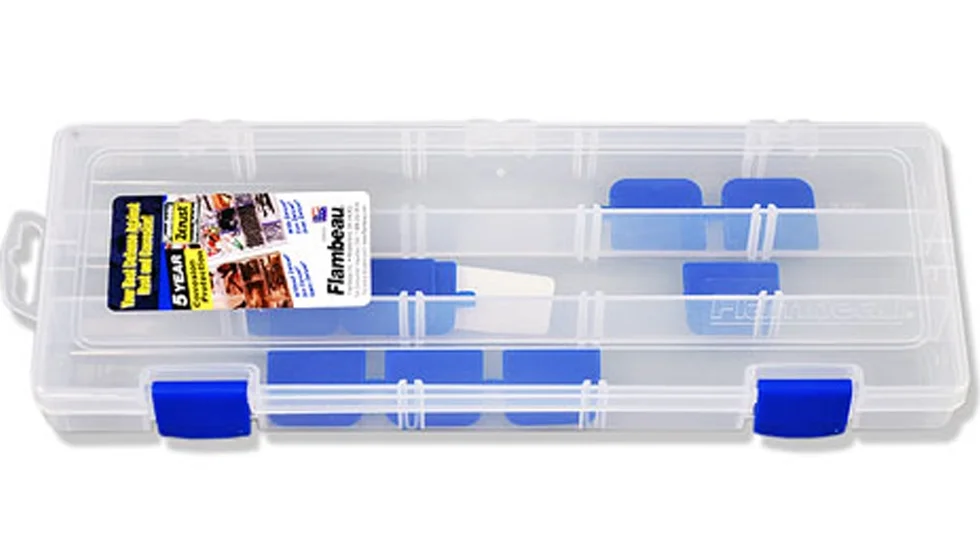 Міцна рибальська коробка Flambeau 3009UM підійде для зберігання різного роду приманок і аксесуарів. Виконана коробка з прозорого пластика з внутрішньою обробкою ZERUST, яка не дозволяє утворюватися корозії на металевих елементах. Всередині є дві стаціонарні перегородки і 9 зйомних, які дадуть вам можливість індивідуально сформувати внутрішній простір. Завдяки своїм універсальним розмірам ця коробка без особливих проблем поміститися в рибальську сумку.