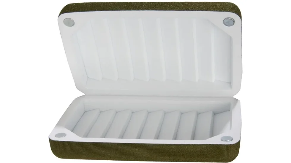 Коробка Flambeau Large Foam Fly Box — легка магнітна коробочка-футляр для нахлистових принад, блешень, мікроджигових принад, мікровоблерків, гачків. Flambeau Foam Fly Box — серія коробок, орієнтована на зберігання нахлистових мушок, а також може підійти й для блешень. Стінку коробки покрито спеціальною піною для гачків. Її виготовлено за технологією VFF, яка перешкоджає висковзанню принад.