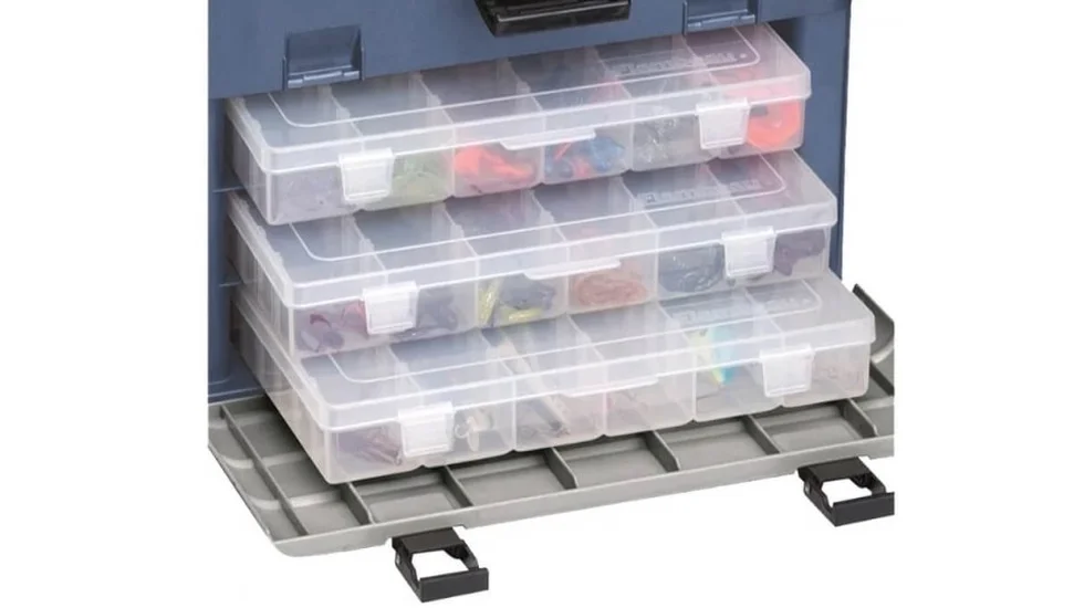 Front Loader Zerust — це рибальський ящик відрізняється особливою конструкцією боксу, в якому присутні 3 висувних відділення створених за принципом шуфлядок в письмовому столі. Кожна з них поділена на дрібні осередки і оснащений кришкою. Верхня частина Flambeau 7020ZR Front Loader Zerust призначена для зберігання більше об'ємних рибальських приналежностей. Даний відсік закривається і фіксується надійної засувкою, конструкція якої запобігає випадкове відкриття. Вся конструкція виконана з високоякісного пластику з додаванням полімеру Zerust, який володіє сильним антикорозійним ефектом, оберігаючи металеві елементи приманок і снастей від впливу вологи та забруднення.