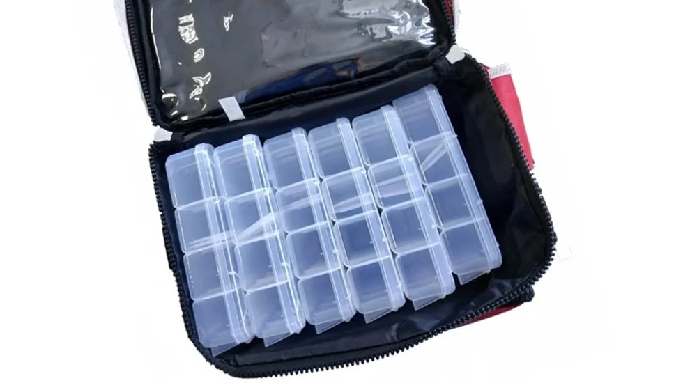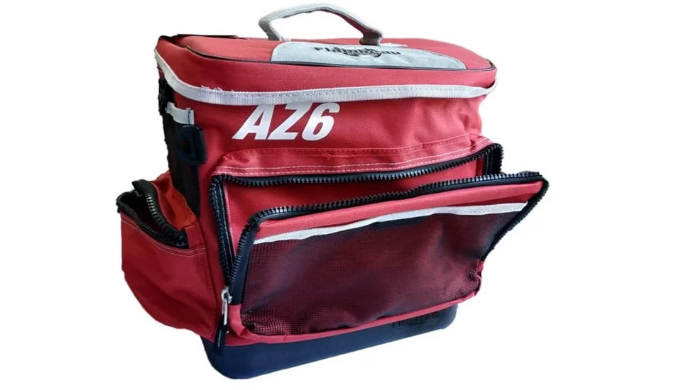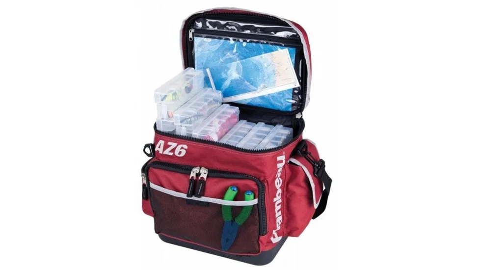 Ящик-сумка з коробками Flambeau (AZ6). Наплічна сумка з коробками для ходової риболовлі, виготовлена з міцного водостійкого матеріалу, закривається замками на блискавці. Має чотири кишені і регульований наплічний ремінь для транспортування. Основні особливості: закривається замками-блискавками, верхня кріпильна гумка-бандаж і чотири кишені, із захистом принад полімером Zerust, міцний водостійкий матеріал сумки, м'який ремінь на плече