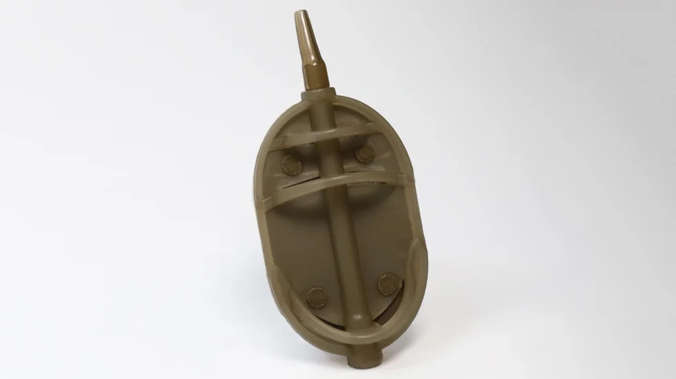 Годівниці вагою 80, 90 і 100 грамів мають зміщений центр тяжіння, такою флет-годівницею легко робити далекі й точні закидання, навіть не беручи до уваги бічний вітер. Використовуючи спеціальну прес-форма XXL для великих годівниць Flat-Method BIG, можна домогтися однорідного і правильного заповнення годівниць. Класична овальна форма добре пробиває вітер і підходить для більшості умов лову. У вітряну погоду і при значній дистанції лову, рекомендуємо, замість пильовика використовувати: Трубку стабілізатор для Flat годівниць, вона також присутня в нашому асортименті.