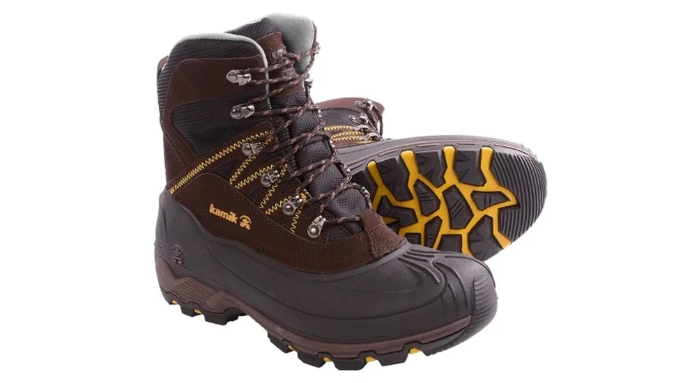 Зимові черевики SNOWCAVERN KAMIK забезпечать сухість і тепло ногам при температурі аж до -40°С. Дуже добре підійдуть як для полювання так і для риболовлі. Черевики виготовлені з водонепроникної шкіри і нейлону, в середній частині стопи ширина черевика регулюється за допомогою шнурків. Лита калоша з легкого, водонепроникного матеріалу EVA підвищеної щільності міцна і зносостійка і при цьому у неї вельми незначна вага, а рифлене каучукове покриття додасть впевненості і мінімізує ковзання на льоду або мокрій поверхні. Утеплювач Thinsulate™ являє собою високоефективний, стійкий до стиснення ізоляційний матеріал. Його особливість: затримання повітря, є відмінним теплоізолятором; відображення теплового випромінювання тіла. Матеріал має гарну вентиляцію, не вбирає вологу і, відповідно, забезпечує гідну теплоізоляцію в будь-яких умовах. Завдяки використанню даної технології черевики стали ще теплішими і зручнішими. Водонепроникність і холодостійкість - основні якості, властиві цьому взутті, що дуже добре для зимової риболовлі.