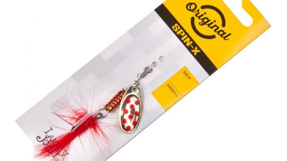 Серія блешень Spin X Round складається з чотирьох моделей, які відрізняються між собою вагою. Представлена тут приманка важить 8 гр. Вона проста в управлінні і може застосовуватися для лову різних хижаків. Оснащена округлою пелюсткою. Тому в порівнянні з блешнями, оснащеними витягнутими пелюстками, їх гра повільніша. Приманка Spin X Round добре підходить для лову пасивної риби. Гачок прихований під опушкою з червоного пір'я. Це доповнення потрібно не тільки для маскування. Пір'я також роблять гру більш провокуючою, змушуючи хижака напасти саме на гачок. Забарвлення дуже яскраві, тому приманку буде добре видно в каламутній воді. Пелюстка доповнена плямами, щоб блешня була більш схожа з живою рибкою.