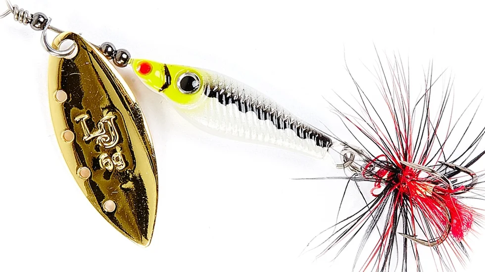 Серія нових обертових блешень Trian Blade Long від фірми Lucky John є класичною приманкою для лову хижака на спінінг. Ці приманки мають дуже надійну, стабільну гру, що робить їх привабливою мішенню для атаки будь-якого хижака, що мешкає в наших водоймах. Легка пелюстка блешні з отворами виконана з латуні і має відмінні динамічні даны при русі у воді. Демонструє стійкі обертання незалежно від швидкості і способу анімації. Пелюстка починає працювати відразу після початку проводки. Кут відхилення пелюстки оберталки в робочому стані близько 30 градусів, що дозволяє використовувати блешню Lucky John Trian Blade Long в водоймах з сильною течією. Сердечник має аеродинамічну форму, що дозволяє знизити ризик перекручування шнура під час проводки. Виконано цей елемент з важкого сплаву, що значно збільшує дальність закидання блешні Trian Blade Long.