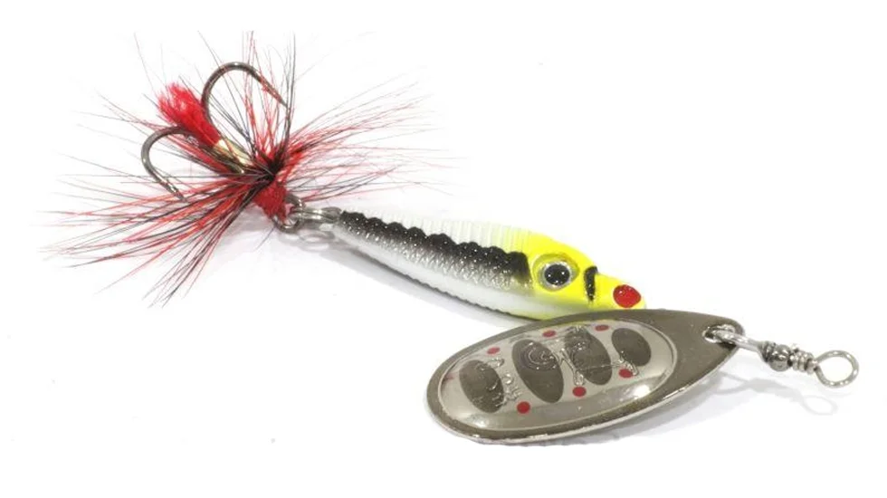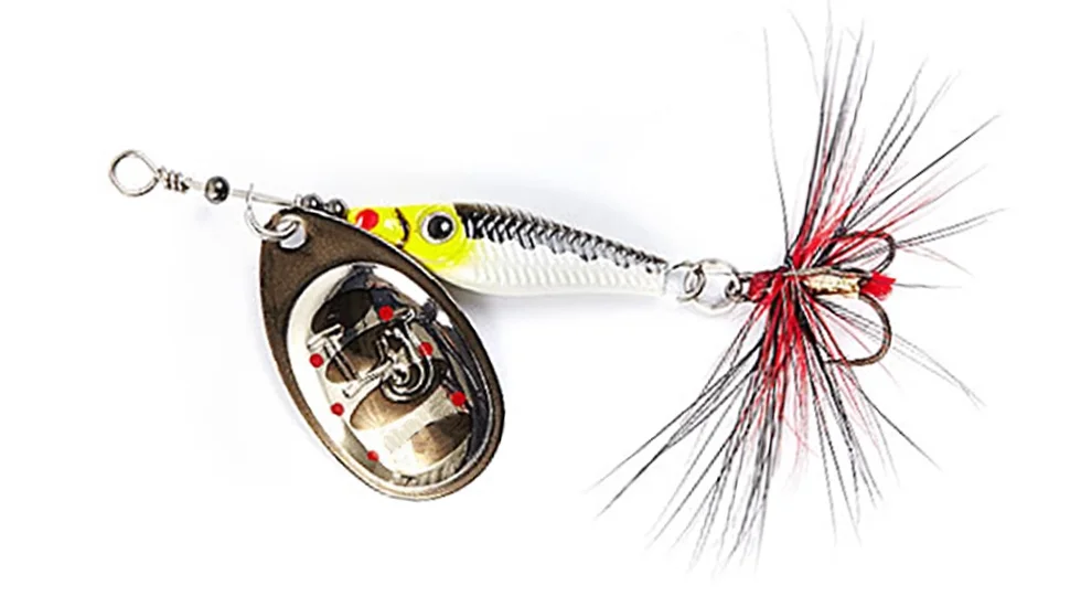 Серія обертових блешень Trian Blade Round від фірми Lucky John є класичною приманкою для лову хижака на спінінг. Ці вертушки мають дуже надійну, стабільну гру, що робить їх привабливою мішенню для атаки будь-якого хижака, що мешкає в наших водоймах. Легка обертова пелюстка виконана з латуні і має відмінні динамічні дані при русі у воді. Демонструє стійкі обертання незалежно від швидкості і способу анімації. "Заводиться" відразу після початку проводки. Кут відхилення пелюстки оберталки в робочому стані близько 60 градусів, що дозволяє використовувати блешню Lucky John Trian Blade Round для лову на спокійних водоймах. Пелюстки Trian Blade Round пофарбовані з двох сторін різними кольорами, що ще більше стимулює інтерес хижака до приманки. Сердечник має аеродинамічну форму, що дозволяє знизити ризик перекручування шнура під час проводки. Цей елемент виконаний з важкого сплаву, що значно збільшує дальність закидання блешні Trian Blade Round. Також для збільшення привабливості приманки трійник оснащується яскравою мушкою.