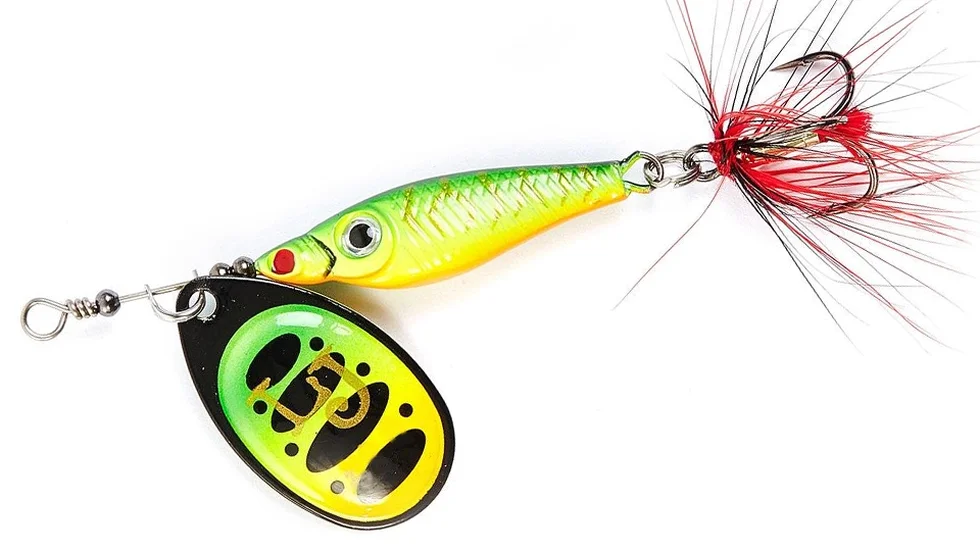 Серія обертових блешень Trian Blade Round від фірми Lucky John є класичною приманкою для лову хижака на спінінг. Ці вертушки мають дуже надійну, стабільну гру, що робить їх привабливою мішенню для атаки будь-якого хижака, що мешкає в наших водоймах. Легка обертова пелюстка виконана з латуні і має відмінні динамічні дані при русі у воді. Демонструє стійкі обертання незалежно від швидкості і способу анімації. "Заводиться" відразу після початку проводки. Кут відхилення пелюстки оберталки в робочому стані близько 60 градусів, що дозволяє використовувати блешню Lucky John Trian Blade Round для лову на спокійних водоймах. Пелюстки Trian Blade Round пофарбовані з двох сторін різними кольорами, що ще більше стимулює інтерес хижака до приманки. Сердечник має аеродинамічну форму, що дозволяє знизити ризик перекручування шнура під час проводки. Цей елемент виконаний з важкого сплаву, що значно збільшує дальність закидання блешні Trian Blade Round. Також для збільшення привабливості приманки трійник оснащується яскравою мушкою.