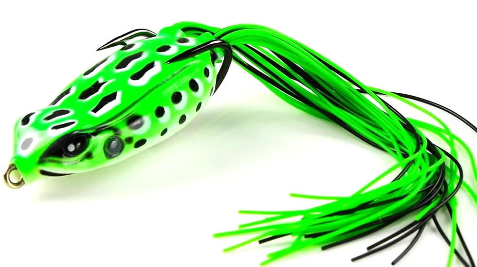 М'ягкі приманки, які імітують жаб, рибалки використовують для лову на поверхні серед водної рослинності. Спіймати на таку приманку можна як велику щуку, так і більш екзотичну здобич - змієголова. Тіло «жаби» від фірми Lucky John виконано з м'якого силікону. При клюванні порожнистий м'який корпус легко продавлюється під могутніми щелепами хижака, оголюючи жала подвійного гачка. До речі, саме завдяки тому, що вістря звернене вгору, «жаба» без зусиль проходить зарослі ділянки водойми. Замість лапок у даної приманки є два пучка довгих ниток. Вони активно коливаються в воді і створюють на поверхні водойми таку гру, яка приверне увагу великого хижака, який бажає поласувати таким ситним «обідом», як жаба. Вага модифікації становить 10,5 гр., а її довжина - 5 см.