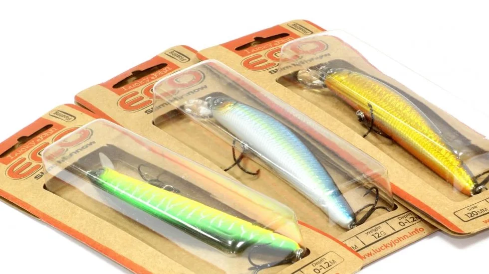 Eco Slim Minnow від фірми Lucky John - відмінно збалансовані воблери-міноу, що мають позитивну плавучість. Ця приманка ідеально підійде для активних пошуків хижака на великих акваторіях і для виманювання з укриття риби. При твічинговій проводці Slim Minnow дуже чутливий до будь-яких рухів вудилища. На різкому твічі приманка створює дуже сильні вібрації при русі у воді, що поширюють гідроакустичні коливання на далекі дистанції. На паузах під час підмотки воблер здійснює плавні погойдування з боку в бік, що дуже ефективно стимулює хижака на атаку. Дана серія доповнює нову лінійку Lucky John ECO Series, анонсовану брендом до літнього спінінгового сезону 2016 року. Воблери ECO розроблялися як доступні за ціною приманки, мають при цьому високу якість. При розробці серії також був зроблений натиск на екологію. Використання пластика в упаковці приманок LJ ECO зведено до мінімуму, а основний матеріал для упаковки - екологічно чистий картон.
