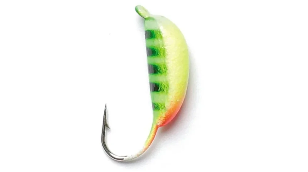 Мормишка вольфрамова з петелькою. Ще один варіант уловистою приманки Банан. Тепер ця приманка стала компактніше і важче. Яскраве забарвлення приманок, з чергуються поперечними смужками із стійкого полімерного покриття, завжди буде привабливою для різної риби. на цю приманку можна ловити з успіхом і без насадки.
