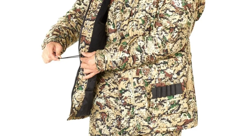 Мисливський костюм з матеріалу, що не шарудить, виготовленого за технологією North Silent Material. Костюм призначений для експлуатації при температурі до -20 ° С. У верхній частині кожної кишені є інтегровані патронташі. Для зручності мисливця, плечі куртки посилені протиковзкими накладками. Проклеєні шви. Мембранна тканина. Камуфльоване забарвлення. Матеріал Nortex Breathable (80% поліестер, 20% PU мембрана), утеплювач Hollofil (100% поліестер). Водонепроникність 6000 мм, "дихаюча" здатність матеріалу 6000 г / м² / 24г.