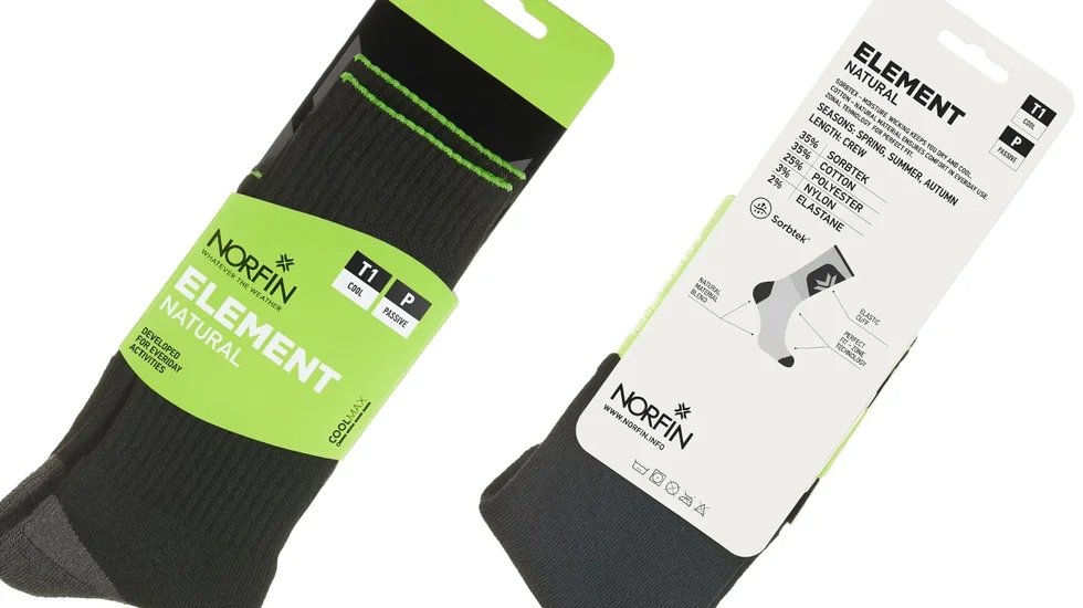 Шкарпетки Norfin T1P ELEMENT NATURAL CREW (35% Sorbtek, 35% бавовна, 25% поліест., 3% нейлон, 2% еласт.)р.M(39-41) для повсякденного використання, ідеально підходять для прохолодної погоди. Вони мають посилення в області носка та п’ятки, що забезпечує додаткову міцність та довговічність. Спеціальна в’язка на ступні підтримує стопу під час ходьби, а еластична підтримка в області своду стопи додає комфорту та стабільності.