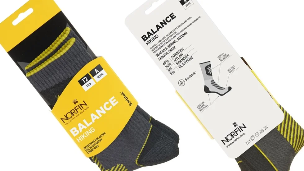 Шкарпетки Norfin T2A BALANCE HIKING CREW (60% Sorbtek, 30% Ny, 5% спандекс, 5% эласт.) р.XL(45-47) ідеально підходять для щоденного використання в холодну погоду. Вони мають зміцнені носок і п'ятку, що забезпечує додаткову міцність. Спеціальна в'язка стопи підтримує її під час ходьби, а еластична підтримка на своді стопи забезпечує зручність і комфорт.
