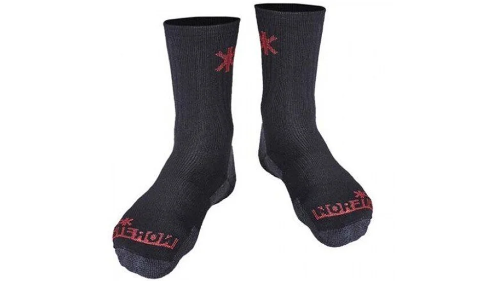 Зі шкарпетками Norfin Merino Arctic Midweight T4A вам не страшна холодна погода, так як вони на 80% складаються з вовни мериноса (австралійська вівця), що забезпечує відмінну термоізоляцію. Додатково, що входить до складу синтетика відводить вологу від тіла, надає необхідну зносостійкість і еластичність. Norfin Merino Arctic Midweight T4A: шкарпетки середньої щільності в'язання, середньої довжини, відрізняються надзвичайною м'якістю і теплотою, оптимально підходять для полювання, риболовлі, туризму, а також повсякденного носіння в міжсезоння, екстремально холодної погоди з високою активністю переміщень. Оптимальний баланс синтетики і натуральних матеріалів дозволяє виводити надлишок вологи зсередини, зберігаючи при цьому тепло ніг в холодну пору року.