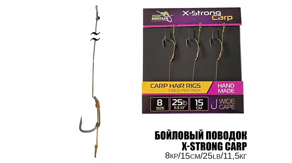 Повідець короповий X-Strong Carp 25LB/11,5кг. L-15см. Hook №6 (3шт) - це надійність та міцність