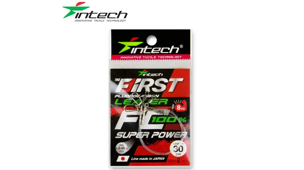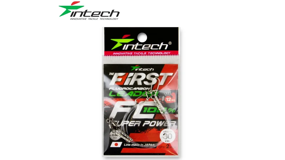 Intech First Leader FC 30 cm 2 шт (0.60mm/12,00kg) – професійні флюорокарбонові повідці для лову щуки, судака та інших хижих риб. Виготовлені з японського флюорокарбону, вони практично невидимі у воді, мають високу зносостійкість та підвищену міцність.