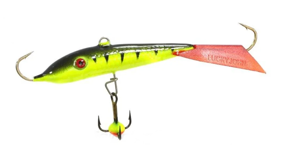 У лінійці повільно плануючих і реалістичних балансирів Fin є модель, розрахована на досить велику здобич. Габарити приманки трохи більше 7 см, вага - 19 гр. Однак варто зауважити, що розміри хвоста - майже 2 см, тому прозорий плавник-стабілізатор візуально зменшує габарити приманки, пофарбований - збільшує. Експерти Lucky John наділили Fin 5 сплощеним черевцем, тому балансир занурюється неспішно. А завдяки хвосту, рухається зі значною амплітудою, щоб обловити більший простір. Імітуюча малька приманка з "живими" очима заманить навіть тих хижаків, що знаходяться на деякій відстані від лунки. Обладнаний, крім впаяних одинарників, балансир Fin 5 трійником з різнобарвною яскравою краплею. Дражливий елемент служить додатковою точкою для атаки. Трійник кріпиться на застібці, щоб під час можливих зачепів його можна було легко зняти. Приманка своєю спокусливою грою спровокує на клювання навіть загальмовану щуку, судака або горбача-окуня.