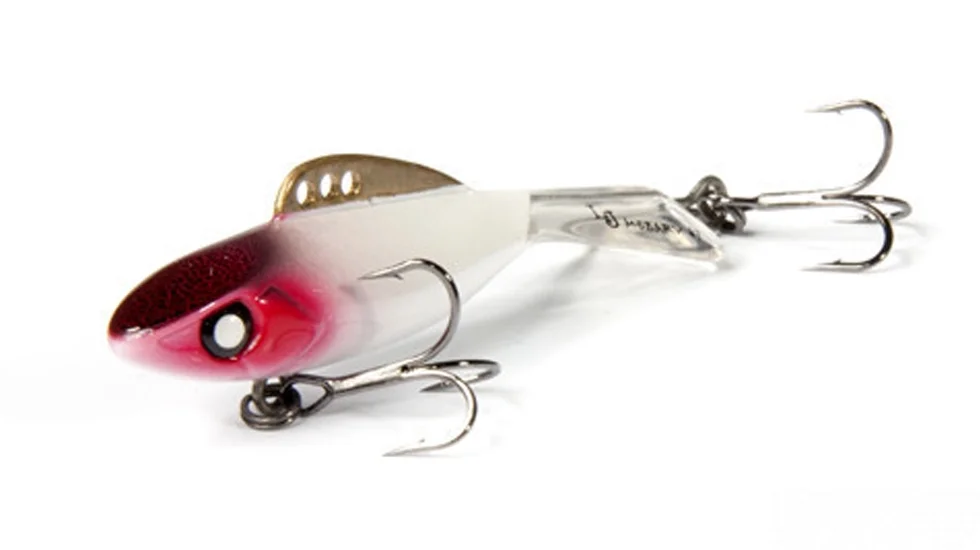 Всі принади з лінійки Pro Series розроблялися для бренду Lucky John фахівцями з Японії. Представлений тут балансир Mebaru 77 теж не виняток. Модель міцна, так як корпус і хвіст - єдине ціле, виконані з морозостійкого пластика. Спереду є широкий плоский майданчик, який вносить "родзинку" в гру. Вивірене балансування робить приманку стабільною як на великій глибині, так і на течії. Балансир довжиною 7,7 см і вагою в 27 гр може обловити вири і ями в пошуках трофейних щуки і судака. Особливість приманки Lucky John модельного ряду Pro Series Mebaru 77 - наявність латунного спинного плавника. Три отвори для кріплення волосіні потрібні, щоб міняти характер гри. Використання переднього - робить гру більш агресивною, з часткою вертикальної складової. Заднього - спокійної і менш амплітудної. Малювати широкі "вісімки", обловлюючи максимальний простір під лункою, балансир буде, якщо волосінь закріпити за середній отвір. Творці, щоб виключити зачепи за кромку льоду, не стали використовувати стандартні впаяні одинарники. У Mebaru 77 є два трійника. Задній прикріплений до наскрізного дротового каркасу, який виходить з кромки хвоста. Цей трійник при бажанні можна зняти.