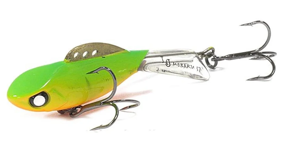 Всі принади з лінійки Pro Series розроблялися для бренду Lucky John фахівцями з Японії. Представлений тут балансир Mebaru 77 теж не виняток. Модель міцна, так як корпус і хвіст - єдине ціле, виконані з морозостійкого пластика. Спереду є широкий плоский майданчик, який вносить "родзинку" в гру. Вивірене балансування робить приманку стабільною як на великій глибині, так і на течії. Балансир довжиною 7,7 см і вагою в 27 гр може обловити вири і ями в пошуках трофейних щуки і судака. Особливість приманки Lucky John модельного ряду Pro Series Mebaru 77 - наявність латунного спинного плавника. Три отвори для кріплення волосіні потрібні, щоб міняти характер гри. Використання переднього - робить гру більш агресивною, з часткою вертикальної складової. Заднього - спокійної і менш амплітудної. Малювати широкі "вісімки", обловлюючи максимальний простір під лункою, балансир буде, якщо волосінь закріпити за середній отвір. Творці, щоб виключити зачепи за кромку льоду, не стали використовувати стандартні впаяні одинарники. У Mebaru 77 є два трійника. Задній прикріплений до наскрізного дротового каркасу, який виходить з кромки хвоста. Цей трійник при бажанні можна зняти.