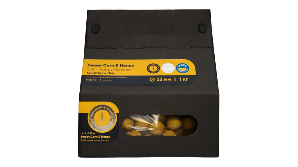 Розчинні бойли "Кукурудза / Мед" 22мм – 1кг від IRON FISH – діаметром 22 мм, скатані вручну на англійських дошках. Бойли виготовлені на преміум міксі, що включає збалансовану кількість білків, жирів та вуглеводів, що робить їх ідеальними для риболовлі на коропа, амура та інших видів риб. Їх потужний аромат кукурудзи та меду допоможе залучити рибу до вашої кормової точки, підвищуючи шанси на успішний улов.
