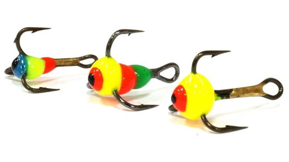 Трійники VMC з пластиковою кольоровою краплею. Використовується для комплектації балансирів і вертикальних блешень.