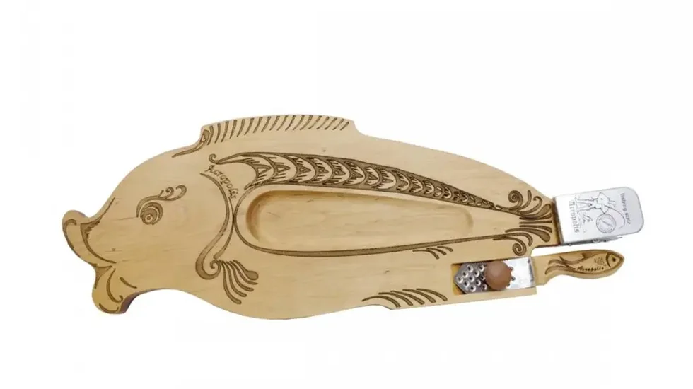 У комплект входить ніж-скребачка з нержавіючої сталі, який не потребує заточення. Рукоятка ножа виготовлена з дерева та має лазерне гравіювання для зручного хвату. Такий набір значно полегшує процес чищення риби, роблячи його швидким та комфортним.