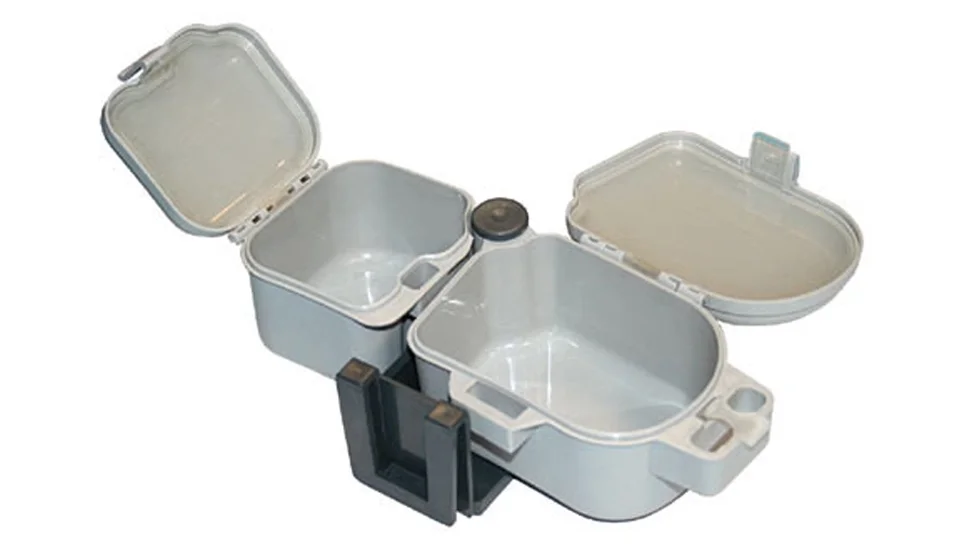 Представлена модель коробки від відомого виробника товарів для риболовлі - компанії Salmo, призначена для живої наживки. Дана модель має виробничим артикулом 1500-70 і складається з двох невеликих відділень, кожне з яких має окрему кришку. Завдяки зручному поясному кріпленню, Ви з легкістю зможете знімати і одягати конструкцію на ремінь. Якісний пластик, з якого зроблена дана коробка, забезпечує надійність і міцність конструкції.