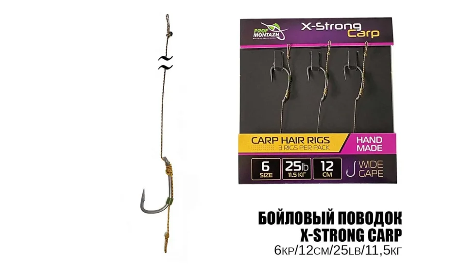 Повідець короповий X-Strong Carp 25LB/11,5 кг, довжиною 12 см, з гачком №6 — це універсальний готовий монтаж для ефективної ловлі коропа. Оптимальна довжина забезпечує баланс між чутливістю та природною подачею наживки. Міцний матеріал витримує значні навантаження, а гострий гачок гарантує надійне підсікання риби. Підходить для використання у короповій та фідерній риболовлі. У комплекті 3 штуки.