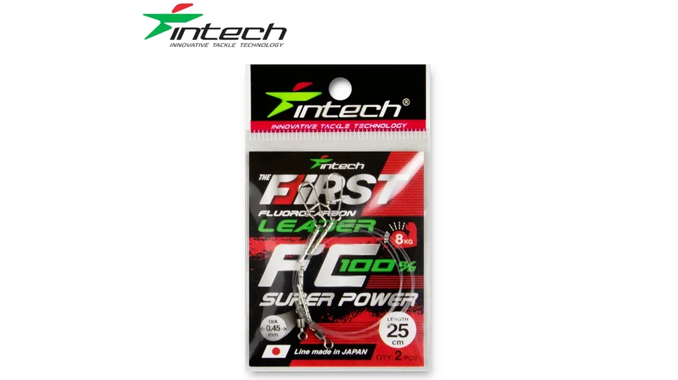 Intech First Leader FC 25 cm 2 шт (0.50 mm/9,00 kg) – готові флюорокарбонові повідці з японського матеріалу, призначені для лова щуки, судака та інших трофейних хижаків. Завдяки невидимості у воді та високій зносостійкості, ці повідці ідеально підходять для спінінгового лову.