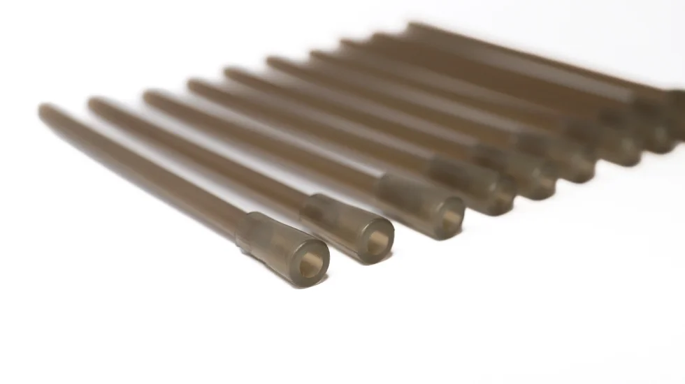 Трубка-стабілізатор польоту годівниці або вантажу. Призначена для стабілізації польоту годівниці (Румунський монтаж) та вантажу. Наявність трубки в монтажі збільшує дальність та точність польоту оснащення. Перехідник щільно надягається на годівницю та не спадає під час силового закиду. В упаковці 10од, довжина трубки 90мм, внутрішній діаметр перехідника 3,5мм. Ця трубка повністю сумісна з усіма Flat - годівницями ProfMontazh.