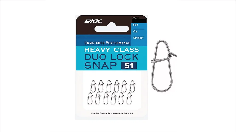 BKK Duolock Snap-51 #000 — це надкомпактна застібка, спеціально розроблена для найделікатніших способів риболовлі, зокрема ультралайтової ловлі з мікроприманками. Завдяки формі Duolock вона забезпечує надійне з’єднання та водночас дозволяє швидко змінювати приманки без шкоди для оснащення.