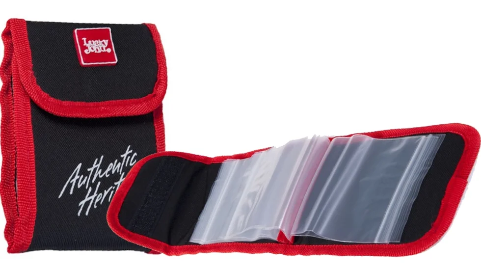 Практична рибальська сумка для зберігання приманок і дрібних елементів оснастки. Виготовлена з міцного синтетичного матеріалу, дозволяє зберігати і транспортувати снасті в ідеальному порядку, при цьому захищаючи їх від пилу, вологи. Застібається на "липучку", відрізняється не тільки продуманою простою і зручною конструкцією, але і стильним зовнішнім виглядом. Спеціальний чохол Lucky John Lure Wallet продається з пакетами Zip Lock для рибальських принад та різних дрібниць