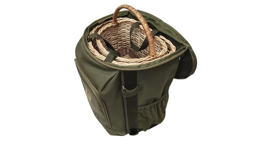 Наплічник виготовлений із водовідштовхуючого матеріалу, що легко чиститься та швидко висихає. М’яка спинка та анатомічні плечові лямки з грудною стяжкою сприяють комфортному носінню. Дно виконане з міцної сітки для постійної циркуляції повітря, що важливо для збереження грибів свіжими.