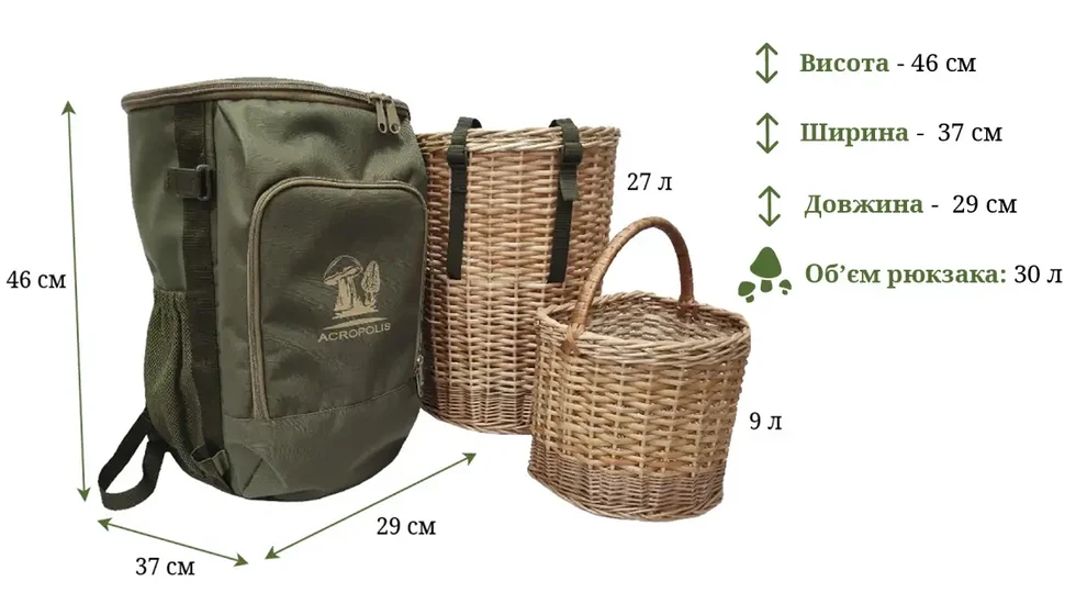 Новинка сезону 2024 від ТМ «Acropolis» – рюкзак для грибника з двома плетеними кошиками! Оновлений дизайн та продумані деталі забезпечують комфорт у лісі та горах.