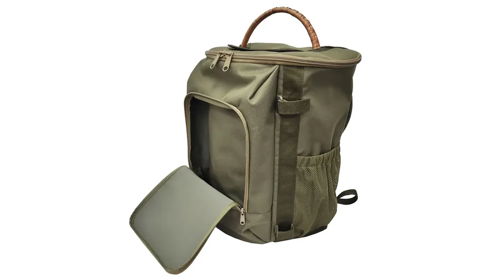 Рюкзак має три додаткові кишені для аксесуарів, їжі чи особистих речей. Верхня кришка закривається на блискавку, а центральний отвір із клапаном дозволяє зручно переносити кошик окремо від рюкзака.