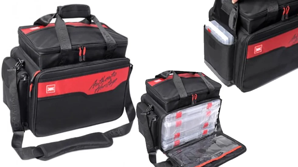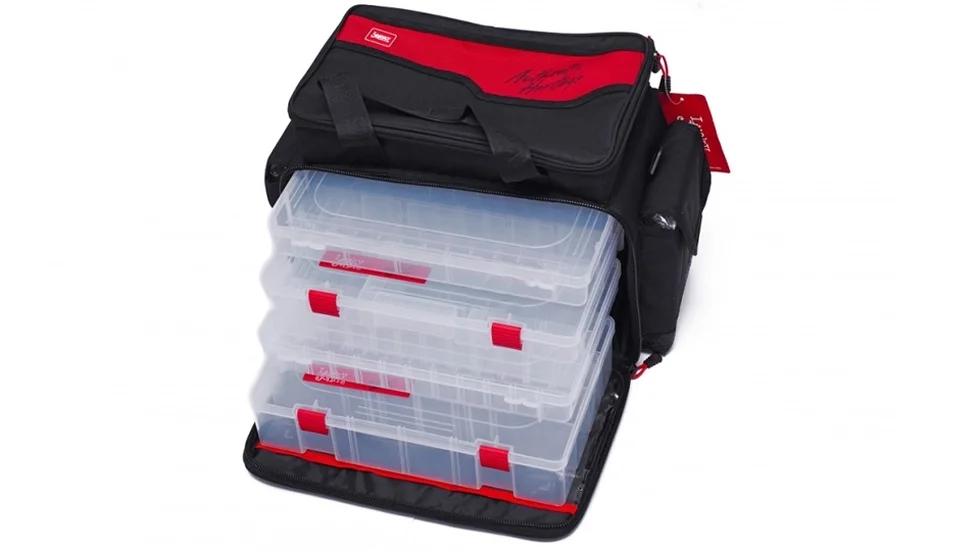 Своєрідний рибальський органайзер з поліестеру, що дозволяє грамотно і компактно розмістити речі, необхідні на рибалці, від одягу і аксесуарів, до снастей і приманок. В комплект включені шість пластикових коробок для об'ємних оснасток і їх елементів. Підійде для наплечного носіння. Основне і верхнє відділення закриваються на подвійні "блискавки". Є достатня кількість кишень і відділень для кожної дрібниці, дно сумки має водонепроникне покриття.