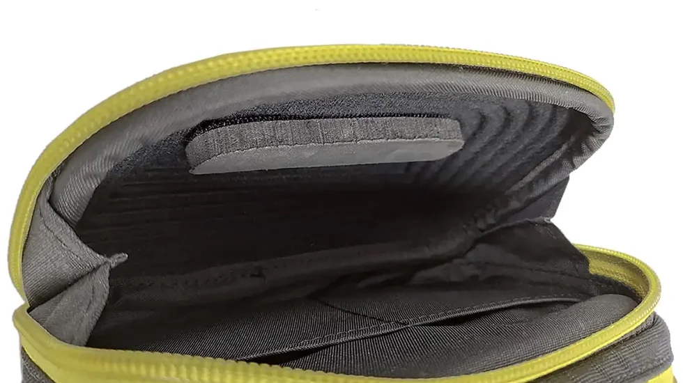 Переднє відділення: Має жорсткий захист з матеріалу EVA і може використовуватися як «міні-столик» для оснастки. В комплекті з сумкою є спеціальна вкладка з пінки для надійного кріплення гачків та приманок.