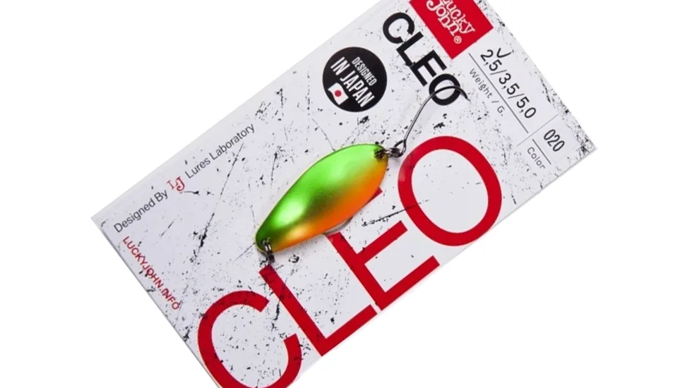 Лінійка блешень Cleo від фірми Lucky John призначена для форелевої риболовлі. Ця колебалка володіє якісним покриттям, яке відблискує при проводці. Ці відблиски на відстані привернуть увагу примхливої форелі. Геометрія самої блешні продумана для яскравої гри і хороших польотних якостей. Навіть при проводці в неквапливому темпі ця колебалка демонструє дуже активну гру, тому вона може розворушити і пасивну рибу. Довжина представленої модифікації складає 3,1 см., а важить вона 2,5 см. Для прихильників риболовлі за принципом «зловив-відпусти» дуже важливим плюсом даної приманки є те, що одинарний гачок не має борідки.