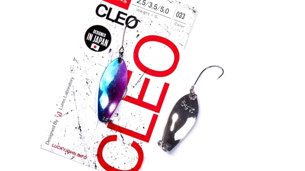 Лінійка блешень Cleo від фірми Lucky John призначена для форелевої риболовлі. Ця колебалка володіє якісним покриттям, яке відблискує при проводці. Ці відблиски на відстані привернуть увагу примхливої форелі. Геометрія самої блешні продумана для яскравої гри і хороших польотних якостей. Навіть при проводці в неквапливому темпі ця колебалка демонструє дуже активну гру, тому вона може розворушити і пасивну рибу. Довжина представленої модифікації складає 3,1 см., а важить вона 2,5 см. Для прихильників риболовлі за принципом «зловив-відпусти» дуже важливим плюсом даної приманки є те, що одинарний гачок не має борідки.