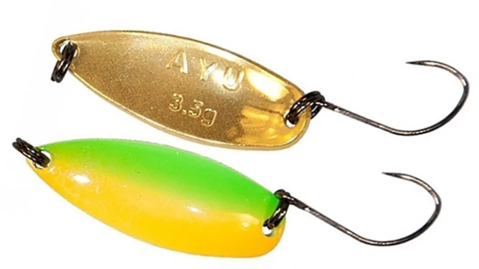 Представлені тут форелеві колебалки при довжині 3,2 см важать 3,5 гр. Експерти Lucky John прорахували геометрію Ayu 3,5 так, щоб поліпшити кастингові показники при невеликій вазі. Витягнута вигнута пластина буде дражливо коливатися в спокійній воді і на течії. При попаданні у воду блешня створює привабливий для примхливої хижачки сплеск. Внутрішня блискуча частина приманки при потраплянні світла створює спокусливі відблиски. Фахівці Lucky John рекомендують цю модель Ayu 3,5 для проводок біля самого дна в неглибоких водоймах. Можна застосувати колебалку для рівномірної і переривчастої анімації, в тому числі способом "потяжка/пауза" або "Lift & Fall" - підкид/падіння. Крім форелі і інших лососевих, на такі блешні можна ловити головня, жереха, окуня і дрібну щучку.
