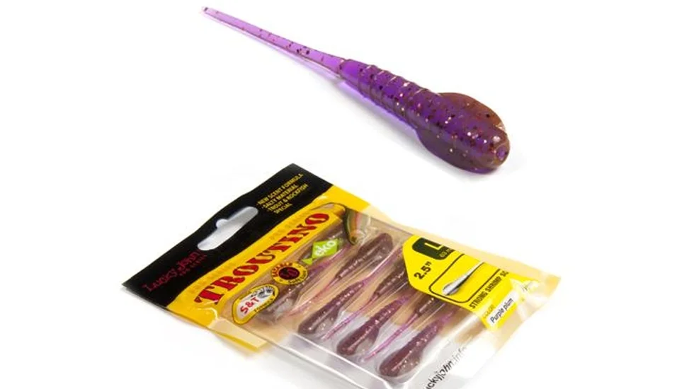 Беззахисний пуголовок буде легкою здобиччю як для хижаків, від всеядного ротана до примхливої форелі, так і для мирних видів риби. Модель Troutino 53 своїм зовнішнім виглядом і грою при проводці імітує цей кормової об'єкт, тому може вважатися універсальною. Довжина слага становить 5,3 см, вага 0,57 гр. На ступінчастій анімації, підкидах або простому ворушінні кінчиком вудилища тоненький рухливий хвостик у даній приманці звивається, спокусливо коливається. Для більшої привабливості експерти Lucky John просочили Troutino 53 стійким атрактантом з насиченим ароматом креветки. Еластичний матеріал не втрачає своїх властивостей навіть на холоді, тому слаг можна застосовувати цілий рік. Приманка добре підійде для мікроджига, може використовуватися для рознесених оснасток. Велика кількість колірних рішень дозволяє вибрати варіант для конкретної здобиччі і умов.