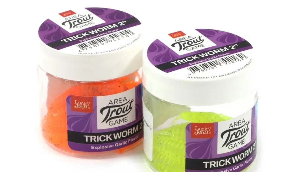 Компанія Lucky John розробила нову програму для любителів лову ставкової форелі. Серія приманок Trick Worm входить в лінійку спеціалізованих форелевих приманок. Крім риболовлі на прісноводних ставках, ця модель може використовуватися для рокфішингового лову. Об'ємна приманка з ребристим тілом добре підходить для оснасток "дроп-шот", "джиг ріг", каролінських і техаських монтажів. Вона представлена в яскравих забарвленнях, традиційно використовуваних для форелевої риболовлі. Принади Trick Worm - "їстівні". Вони оброблені великою кількістю маслянистого атрактанта з насиченим запахом часнику. Принади упаковані в пластикові баночки з герметичною кришкою, які краще зберігають аромат атрактантів. У кожній банці - 10 шт.