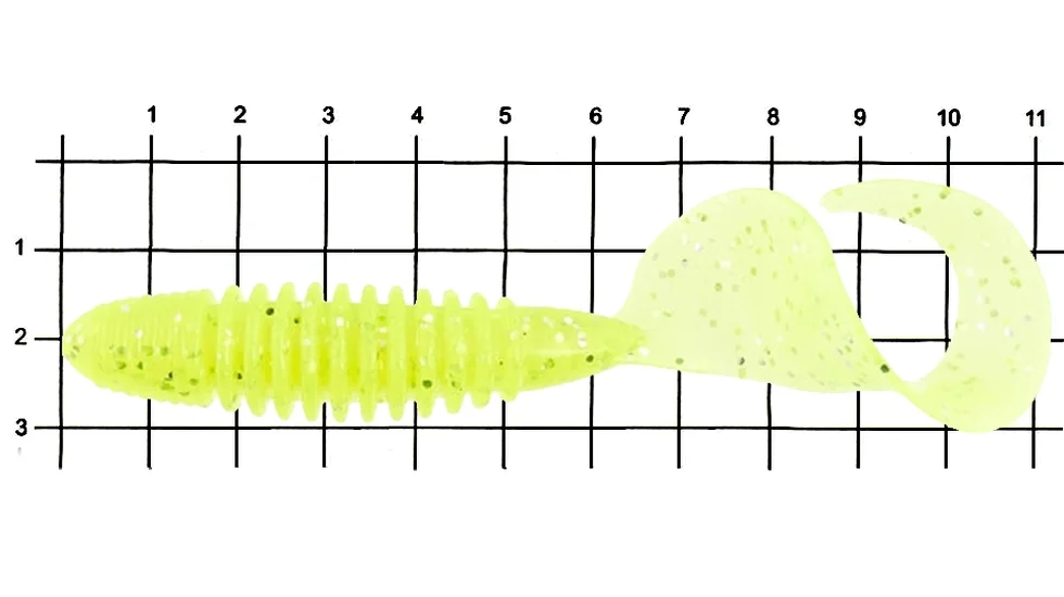 Конструкція представленого твістера з серії Crusher Grub продумана для "гучної", з потужними вібраціями дражливої гри. Основне завдання приманки - залучення трофеїв, типу зубастої щуки, судака або горбача-окуня. Округле в перерізі, витягнуте тіло оперізують кільцеві ребра, що підсилює обурення середовища при проводці. Великий серповидний плоский хвіст динамічно коливається. Для більшої привабливості експерти Lucky John додали в матеріал Crusher Grub солі і пахнучий макреллю атрактант. У воді твістер залишає ароматний слід. Після клювання навіть вибагливі хижаки не поспішають випльовувати смачне "частування", що зручніше для підсічки. Довжина даної приманки становить 9,9 см, вага 8,1 гр. Об'ємне тіло зручне для оснащення одинарним, подвійним гачком або офсетником. Модель може працювати як з джиговою голівкою, так і без додаткового навантаження.
