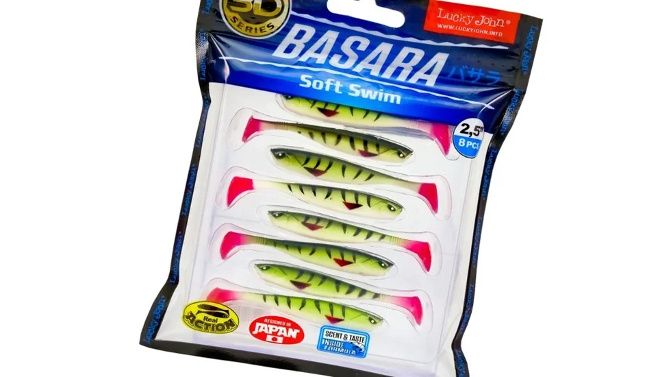 Ще одна реалістична, створена за 3D-принципом приманка від розробників Лакі Джон. Віброхвіст імітує забарвленням і геометрією прогонистого малька. Модель Basara Soft Swim має габарити в довжину 6,3 см і масу 1,63 гр. Підійде для щучої, окуневої і судакової риболовлі. Потужна п'яточка на тонкому хвості забезпечує потужні гідроакустичні вібрації, які виманять хижаків з віддалених укриттів. Природна гра обдурить навіть вибагливу рибу. Крім того, експерти бренду Lucky John просочили Basara Soft Swim насиченим стійким атрактантом з ароматом креветки. Творці рекомендують оснащувати даний віброхвіст звичайним одинарником, двійником, джиг-голівкою. Оптимально використовувати вантажі масою від 5 до 12 гр.